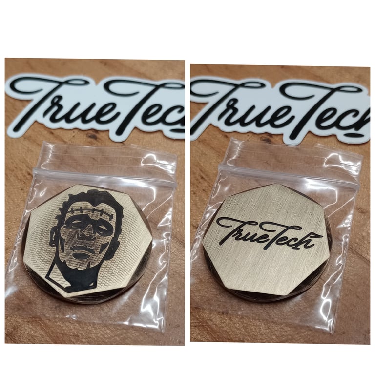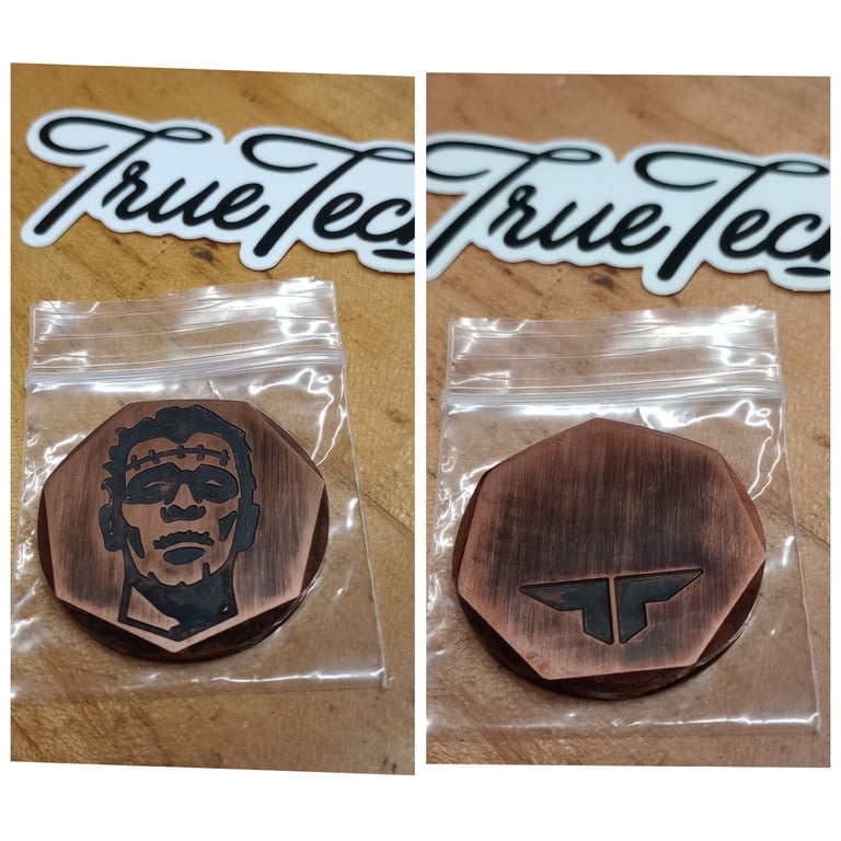 Custom Frankenstein markers CNC machined with a forced antique finish. These come in c360 brass and c100 copper.